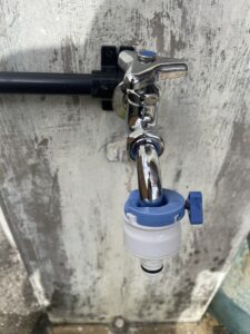 点検すると、ホースを接続すると水圧がかかり蛇口上部より水漏れしておりました。